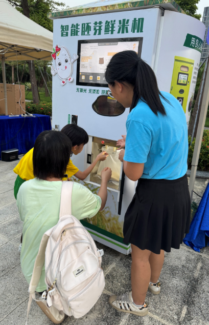 機(jī)器儲(chǔ)存新鮮稻谷,而非成品米。用戶下單后,由25秒到2分鐘內(nèi)完成碾殼去糠,產(chǎn)出帶完整胚芽的鮮米,過(guò)程透明無(wú)中間環(huán)節(jié)。